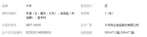 千禾 15°糯米料酒 零添加 糯米酿造 500ml