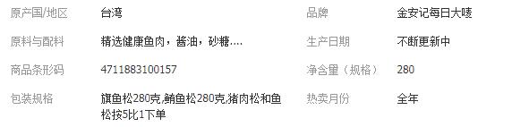 台湾金安记宝宝肉松儿童辅食营养鱼松鱼肉松肉酥无添加猪肉松罐装