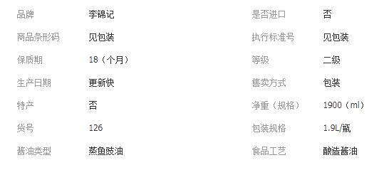 李锦记蒸鱼豉油1900ml瓶装清蒸凉拌生抽家用剁椒鱼头厨房调味料理