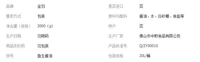 料理店专用 金羽 桶装 咸味液体调味鱼生酱油