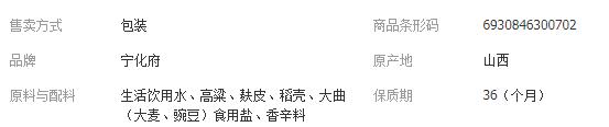 山西特产宁化府山西老陈醋粮食酿造食醋饺子醋500ml