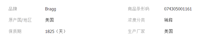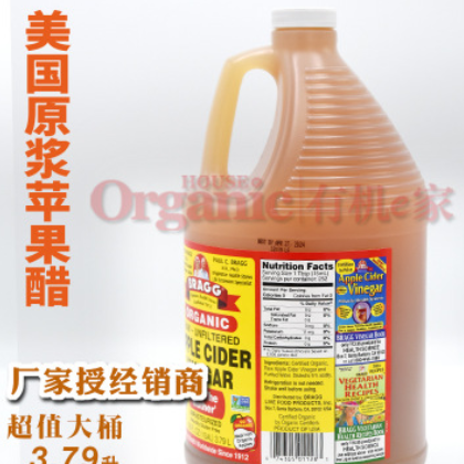 美国原装进口Bragg apple cider vinegar 无脂无糖苹果醋3790ml