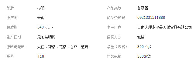 油豆豉 云南大理特产香辣味300g调味品下饭菜调料拌面酱 香菇豆豉