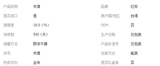 台湾进口红标料理米酒 600ml/瓶12瓶/箱装 调味品批发