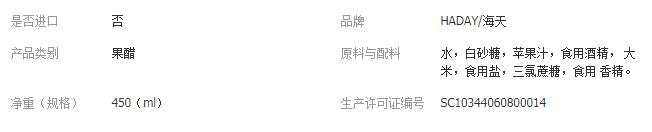 海天苹果醋【450ml*12瓶】 食用醋水果醋泡香蕉 凉拌菜沙拉调料