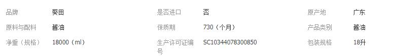 葵田酱油18升 日本酱油 浓口酱油 日式酱油 料理店专用