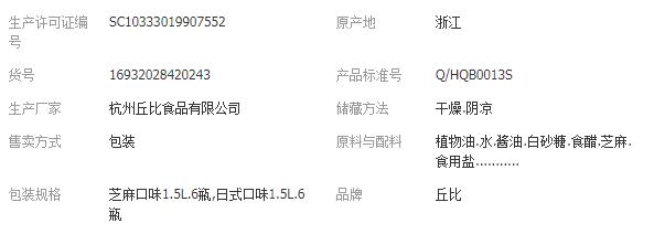 丘比沙拉汁焙煎芝麻口味1.5L.6瓶日式大拌菜水果蔬菜沙拉酱蘸酱