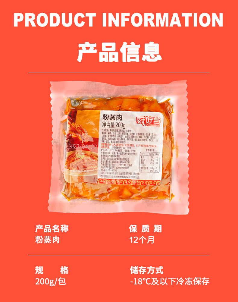 厨好当200g袋装粉蒸肉冷冻食品外卖商用速食快餐预制菜料理包批发