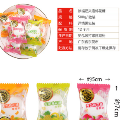 徐福记夹馅散装棉花糖500g 结婚喜糖夹馅水果味休闲零食一件代发