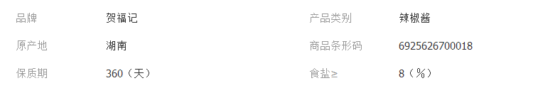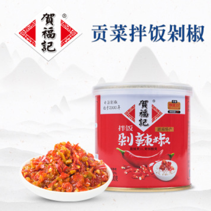 一件代发贺福记罐装贡菜剁椒拌饭辣椒酱200g/罐