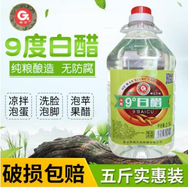 格万 9度白醋5斤纯粮酿造 食用洗脸泡脚泡蛋除垢泡苹果醋