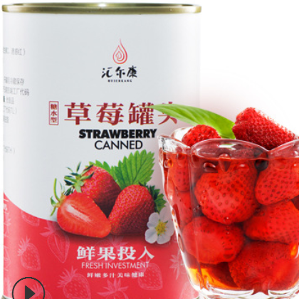 汇尔康草莓罐头425g/罐新鲜糖水型水果罐头烘焙果捞即食整箱批发
