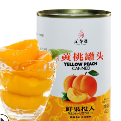 汇尔康黄桃罐头425g/罐新鲜糖水型水果罐头烘焙果捞即食整箱批发