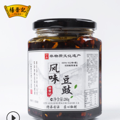 杨晋记风味豆豉280香辣干豆豉辣椒酱黄姚黑豆调味料批发